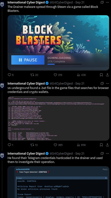During a livestream fundraiser on September 21, Plavnieks was tricked into downloading a Steam game called “BlockBlasters” that contained sophisticated malware. The malicious software drained more than $32,000 from the Latvian gamer’s cryptocurrency wallet, leaving him devastated and in tears on stream.