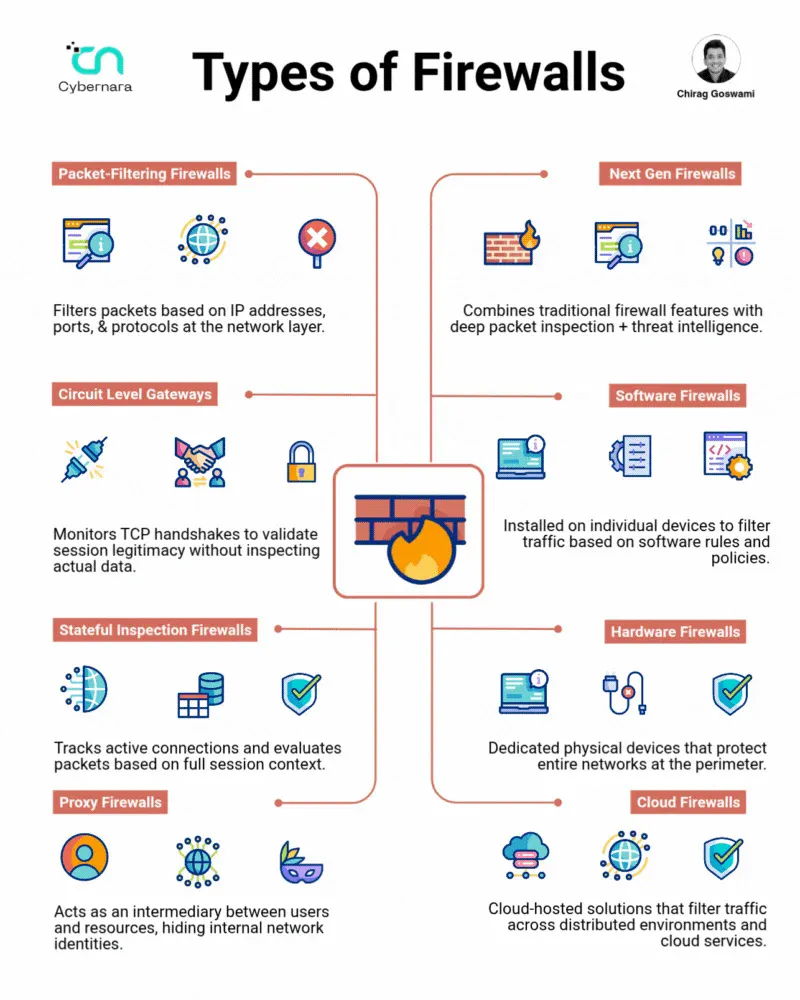 Think of firewalls as the digital bouncers of the internet world. Just like a nightclub bouncer checks IDs and decides who gets in, firewalls examine network traffic and decide what’s allowed through. But not all firewalls work the same way – let’s break down each type and understand when you’d use them.